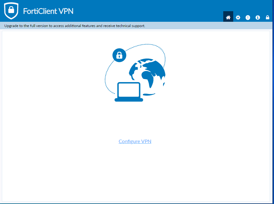 After installing the FortiClient VPN, open the program and select Configure VPN.