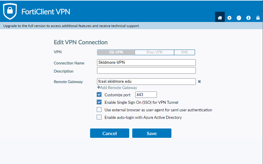 Configuring the FortiClient for Skidmore VPN Access